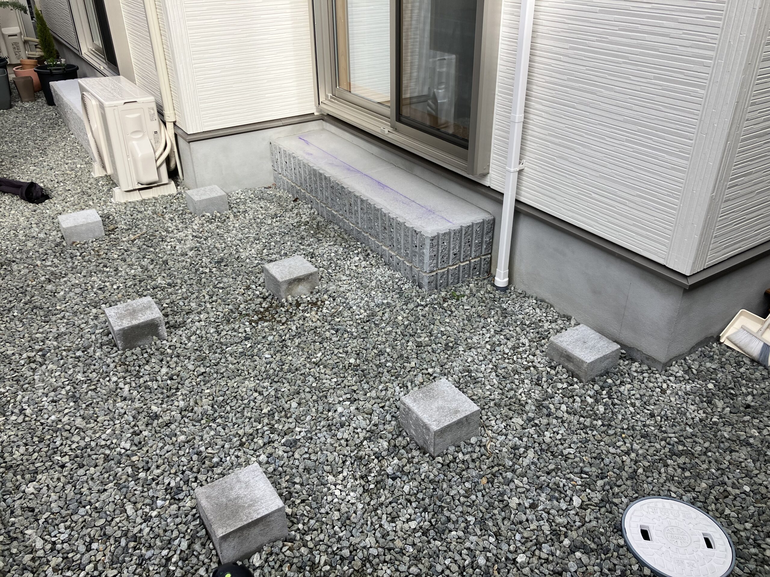 ウッドデッキの柱部分に基礎をしていきます